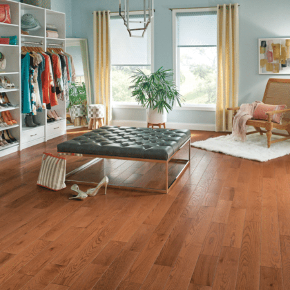 To create a modernized rustic aesthetic, select Hartco Paragon Hickory Scrape Solid Hardwood. The smooth rustic design of Paragon Oak is sure to impress any guest in your home with the highlights of natural character seen in every board. The rich colors bring out the wood grains and knots for a visually stunning display for a timeless style in any room. To top it off, there is a fifty year limited residential warranty and a ten year limited light commercial warranty.
