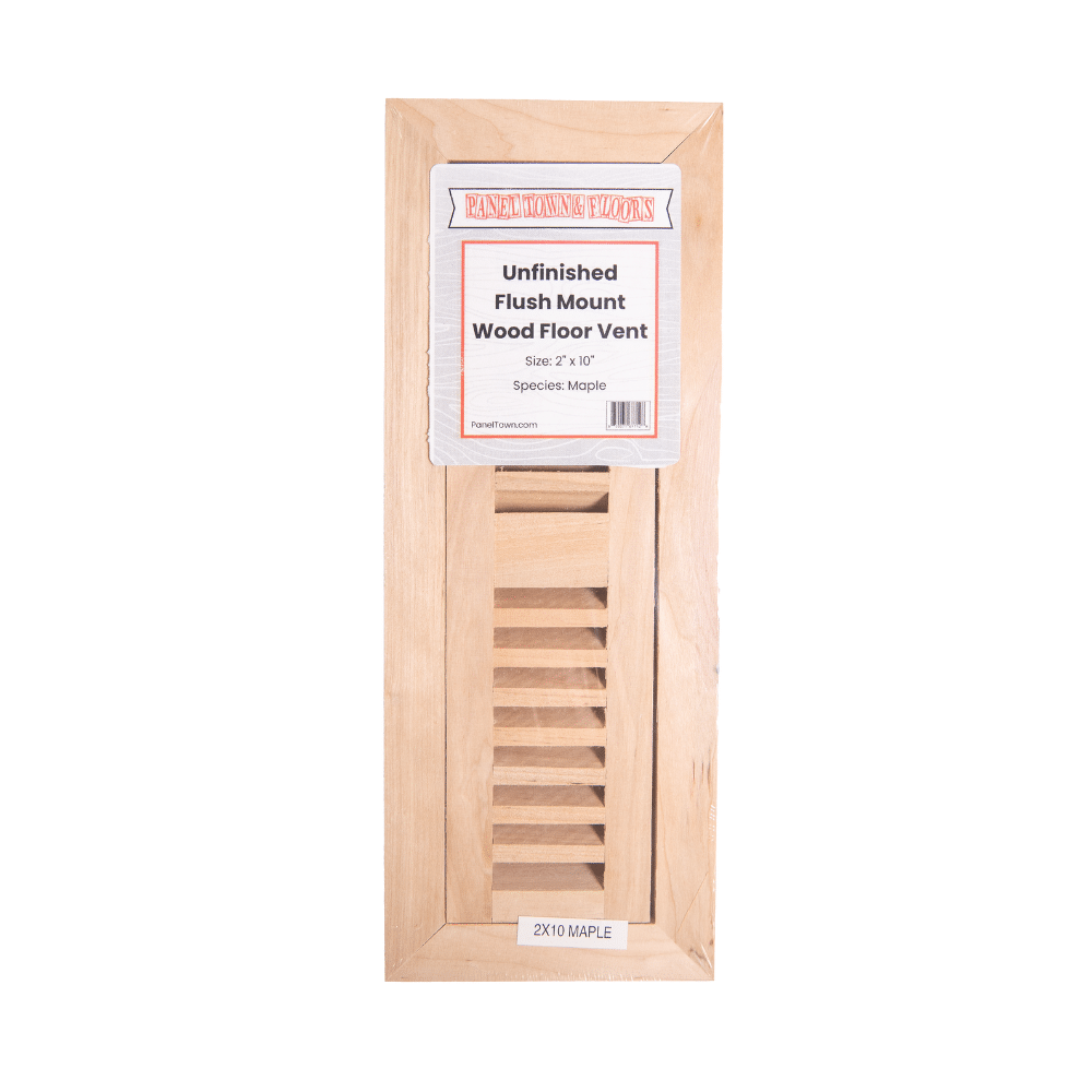 The Panel Town Unfinished Maple Floor Vent with Damper 3/4″ x 2″ x 10″ blends seamlessly with your hardwood floors, enhancing the look of your space while giving you precise air flow control.
