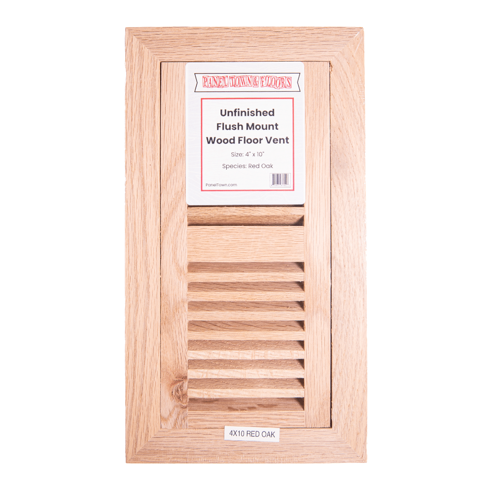 The Panel Town Unfinished Red Oak Floor Vent with Damper 4″ x 10″ blends seamlessly with your hardwood floors, enhancing the look of your space while giving you precise air flow control.