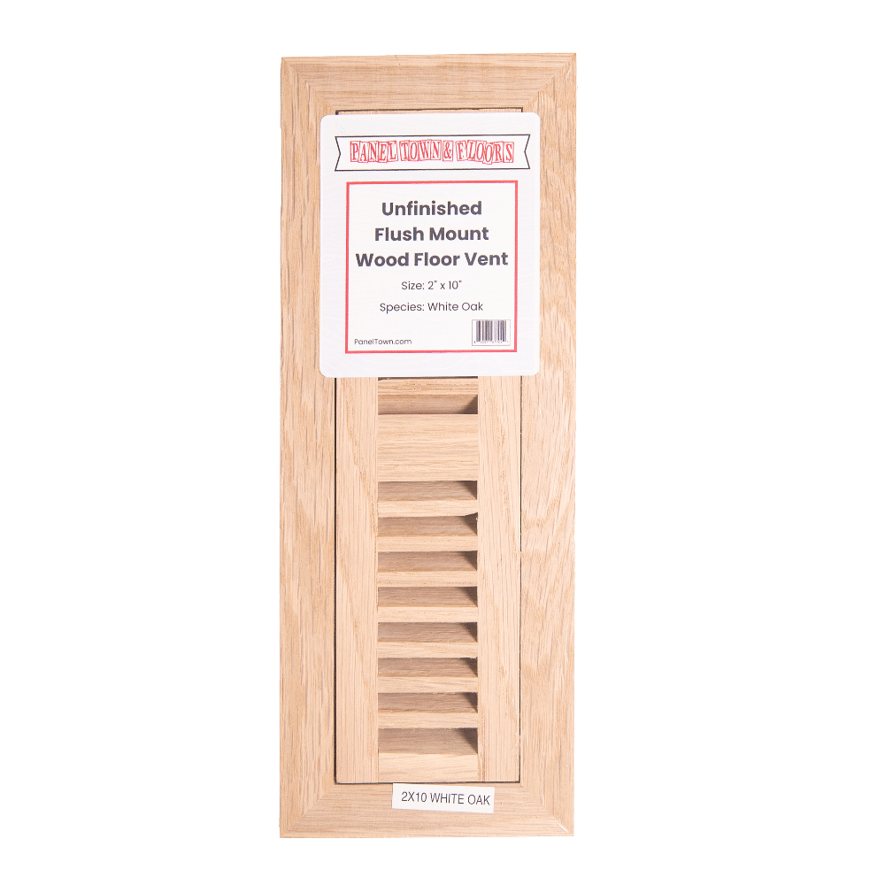 The Panel Town Unfinished White Oak Floor Vent with Damper 3/4″ x 2″ x 12″ blends seamlessly with your hardwood floors, enhancing the look of your space while giving you precise air flow control.