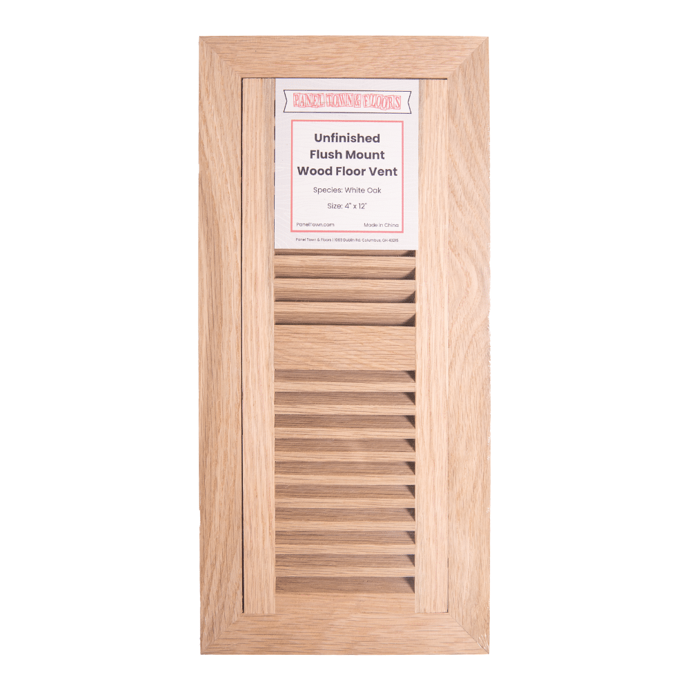 The Panel Town Unfinished White Oak Floor Vent with Damper 3/4″ x 4″ x 12″ blends seamlessly with your hardwood floors, enhancing the look of your space while giving you precise air flow control.