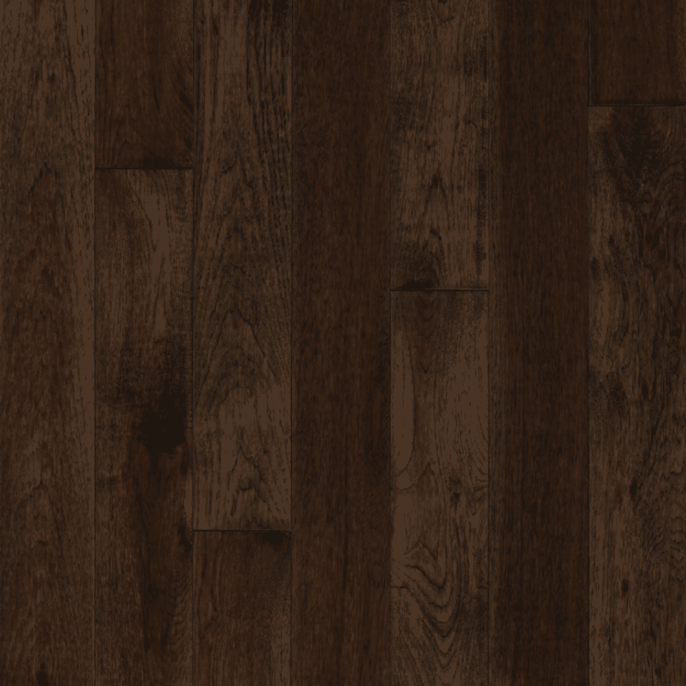Robbins Natural Forest Smooth Hickory features a traditional finish that highlights the strong grain pattern and natural variation of hickory. The low gloss urethane with aluminum oxide helps protect the surface while keeping a more natural appearance. Solid hardwood construction allows the floor to be sanded and refinished over time for extended use.