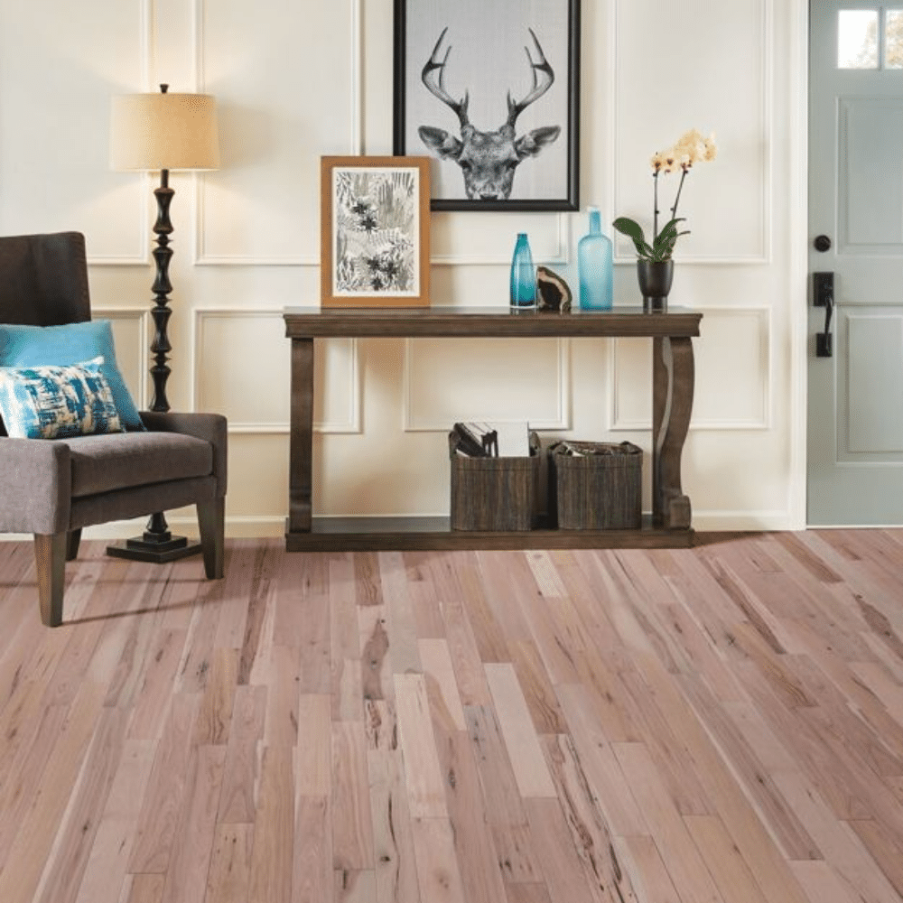 Robbins Natural Forest Smooth Hickory is a solid hardwood floor with a traditional finish, low gloss appearance, and durable aluminum oxide protection.