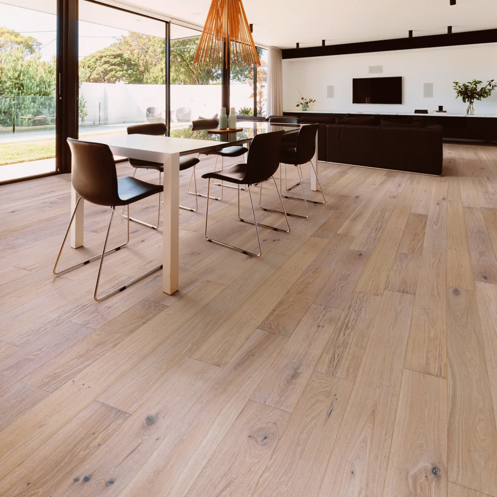 With an abundance of the natural charm that makes hardwood floors so desirable, Ensemble is white oak at its finest. Subtle wirebrushing and stylish 7 1/2″ wide planks let the beauty of the wood shine through for a timeless look that ages gracefully. Part of the Gallery Collection of premium hardwood, Ensemble is hand selected by design experts to bring the natural artistry of hardwood into your home.