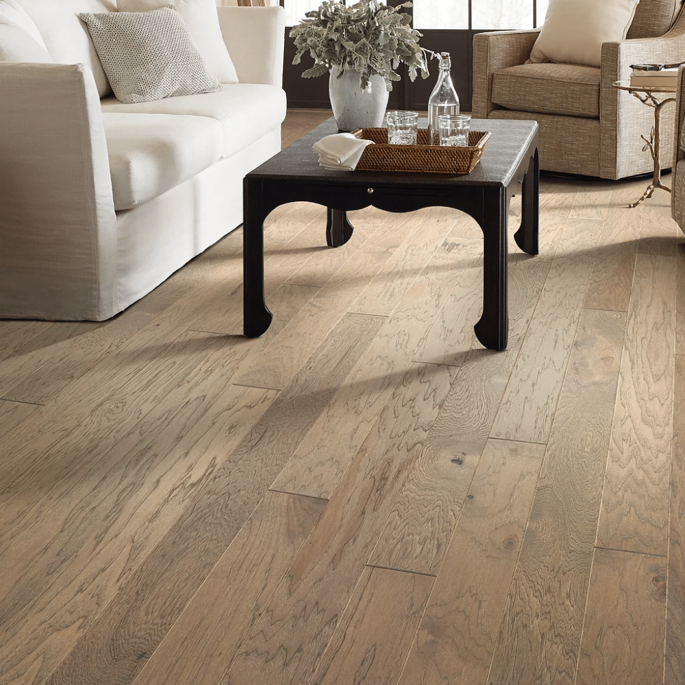 Subtle wirebrushing lets the natural beauty of hickory shine through with High Plains 5 Hardwood from Shaw Floors. Part of the REPEL Collection with Splash-Proof Technology that guards against splashes and spills 2x better than untreated hardwood. It also features superior dent resistance and ScufResistⓇ Platinum finish to guard against scuffs.